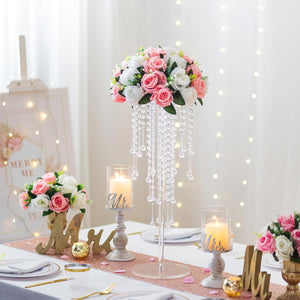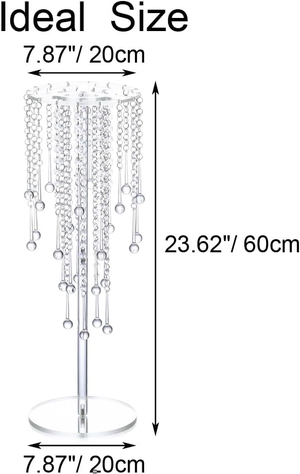 - Material: Made from high-quality acrylic for durability and a sleek finish. Features shimmering crystal chains and lollipop-shaped crystal beads, enhancing the sacred and elegant feel of your wedding table decor.