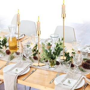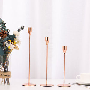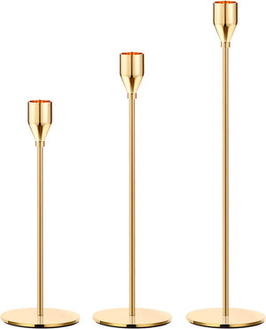 Bulk Set of 3 Gold Taper Candle Holders Metal Candle Stands for Wedding Dining and Parties Fits 3/4" Thick Candles and LED Candles Wholessale