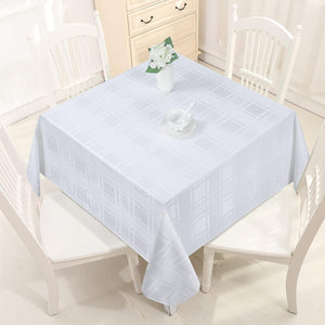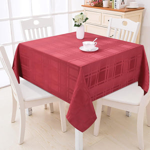 - Elevate your event or party décor with our Solid Plaid Jacquard Spring Tablecloth. Crafted from high-quality polyester, this tablecloth is designed to withstand wrinkles and repel water, ensuring a pristine look throughout your festivities.
