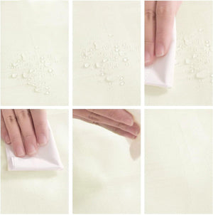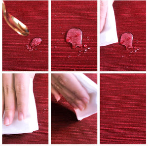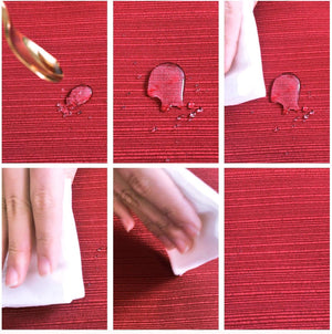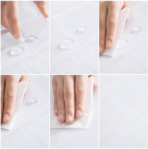 - Easy to Care: These tablecloths are spill-proof, water resistant and wrinkle free. liquids bead up for easy cleaning. Machine wash in cold water and tumble dry. Require little or no ironing. DO NOT BLEACH.
