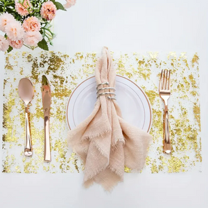 - Made of polyester fiber with metal foil, it is not easy to break and deform, and is easy to clean and maintain for long-term use. It has a mesh appearance and is decorated with sparkling gold foil, adding a touch of luxurious luster to your dining table, and its exquisite and elegant design can better highlight your taste and personal charm.