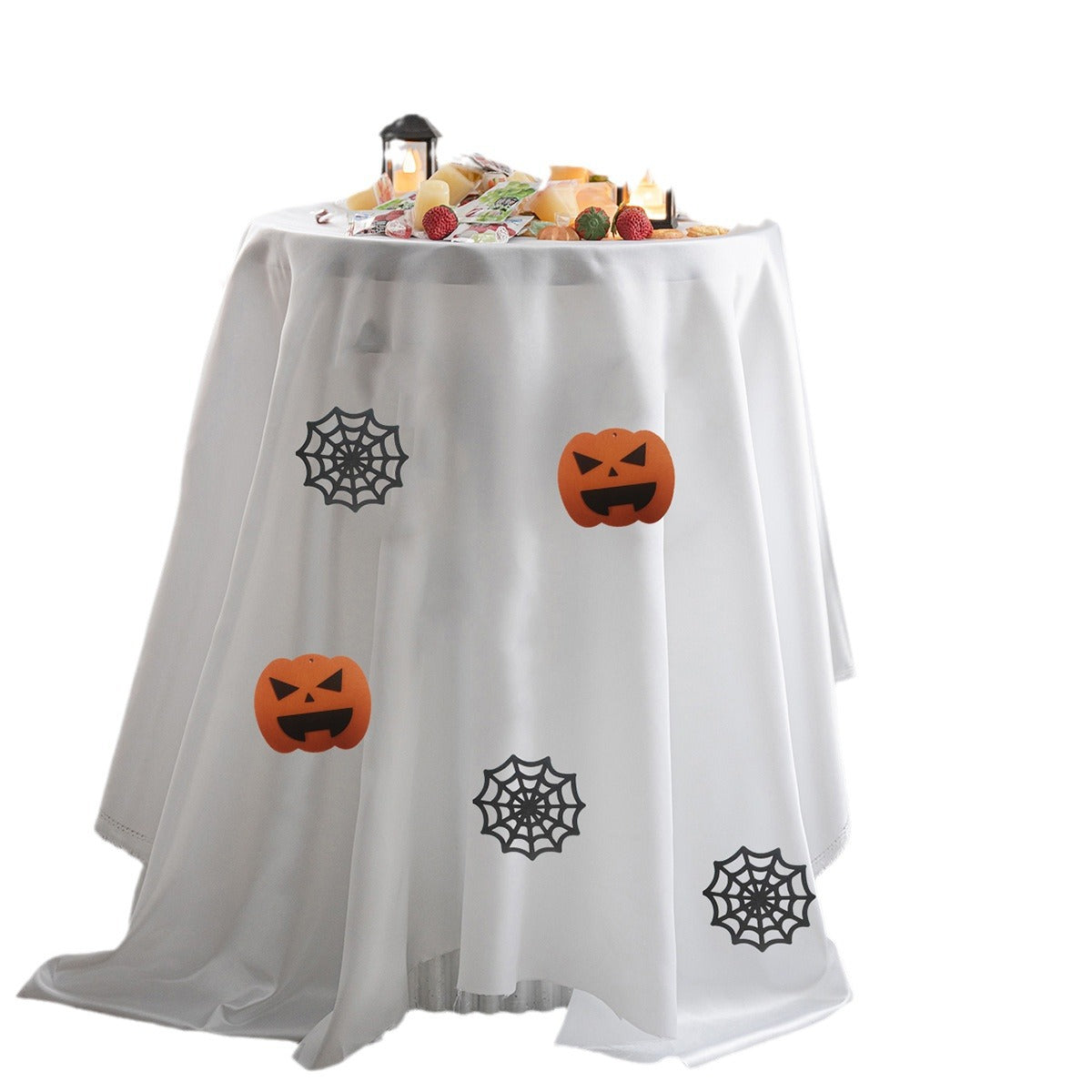 Elevate your Halloween festivities with our Spooky Halloween Tablecloth. This white tablecloth features eerie ghost, pumpkin, and spider web prints that add a festive touch to any celebration. Perfect for creating a hauntingly delightful atmosphere for parties, dinners, or home decor.