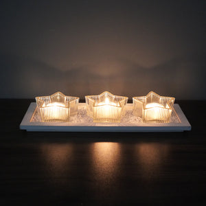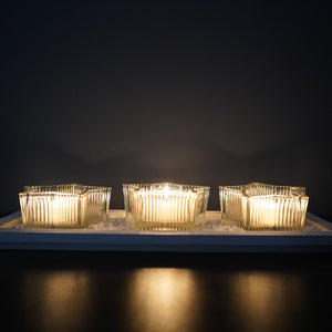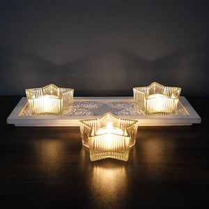 - Package of 1Set x Candle Holder (Three star candle holders, one tray, candles not included)