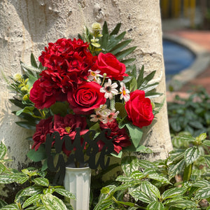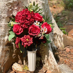 Bulk Summer Memorial Flowers with Vase Red Rose Graveyard Grave Flowers Wholesale