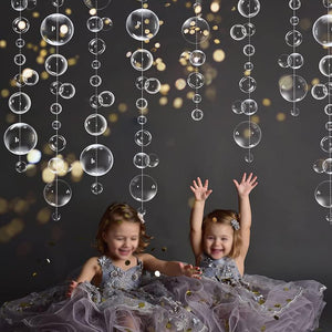 - Enhance any event with our Transparent Bubble Background Streamer! Crafted from durable PVC material, this garland features a stunning arrangement of bubbles in various sizes, creating a whimsical and enchanting atmosphere. Perfect for birthdays, baptisms, weddings, baby showers, and undersea festival decorations, it adds a touch of elegance and charm to any occasion.