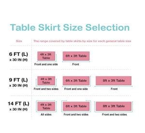 - Wide Range of Usage: The table skirting is perfect for indoor and outdoor party decor, enhances event decor for weddings, baby showers, bridal showers, birthday parties, and Christmas celebrations. Perfect for banquets, sweetheart table, dessert tables, and cocktail parties.