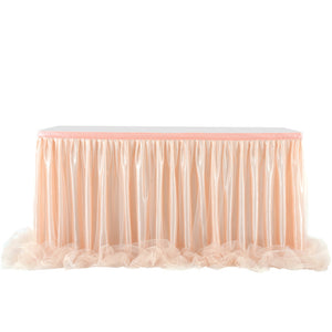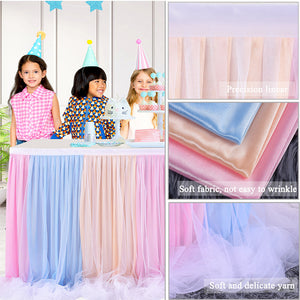 - Premium Tulle Material: The tulle table skirt is made of 2 layers, including 1-layer outer high-quality extra-long Tulle +1 inner anti-wrinkle and flexible lining. It looks noble and elegant more layered, and not easy to wrinkle, making the tulle skirt looks more elegant and flowing.