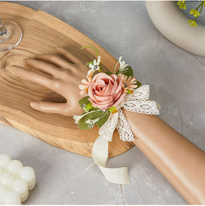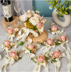 Bulk White Pink Wedding Bouquets Bride Bouquet Wrist Corsage Groom Boutonniere Wedding Flower Bridesmaid Wrist Corsage Party Wedding Decoration Wholesale