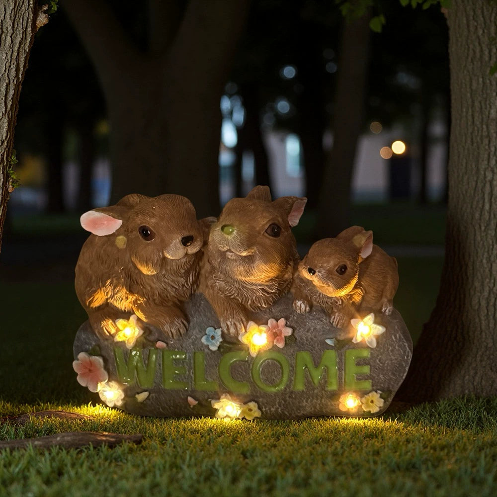 Bunny Family Welcome Garden Decor - Outdoor Patio Cute Yard Accent