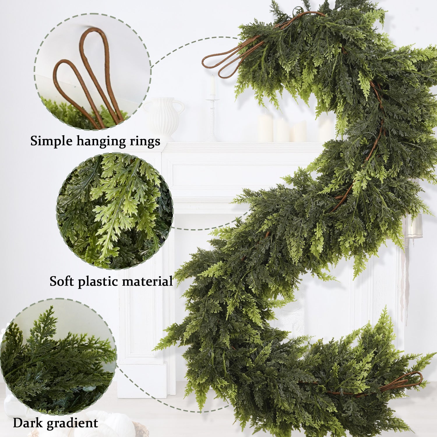 Christmas Faux Cedar Garland - Realistic PE Texture Fireplace Decor Festive Holiday Home Accent with 4 Size Options