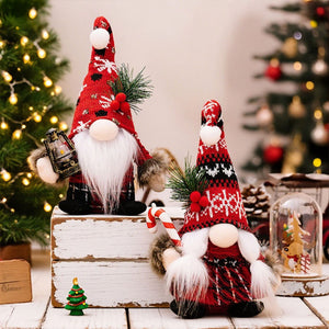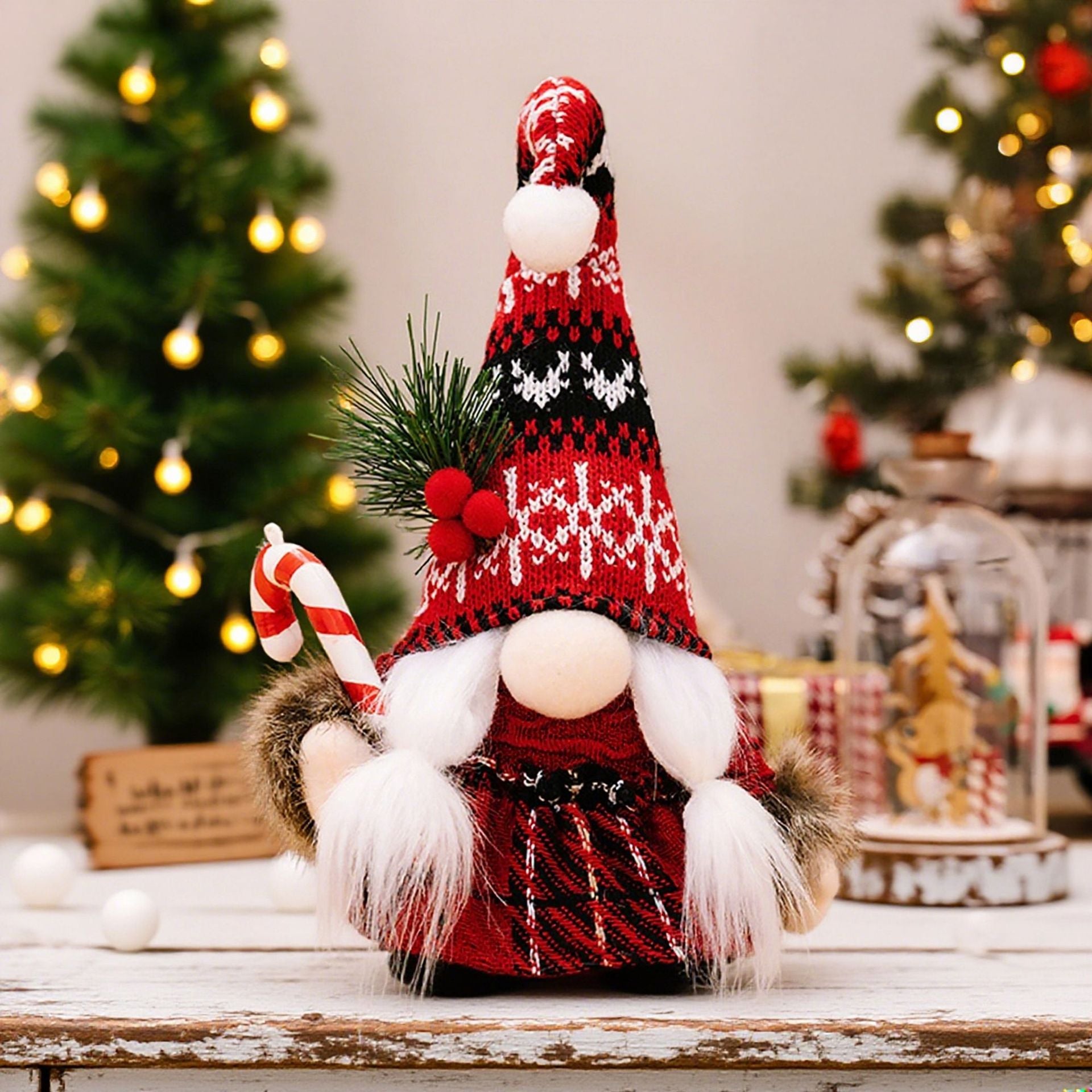 Christmas Gnome Decor - Knitted Bent Hat & Candy Cane Design Standing Figurine