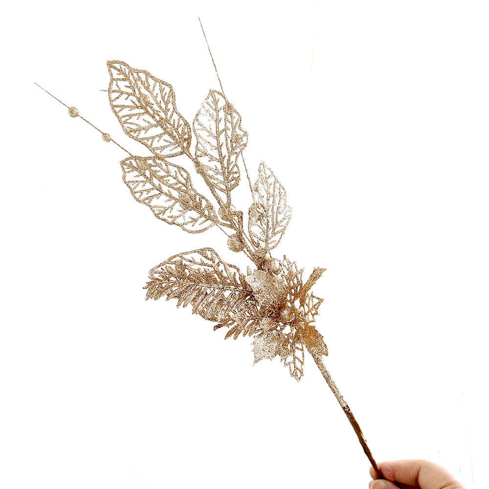 Christmas Gold Glitter Lily Ornament - 17" Christmas Tree Topper Decoration