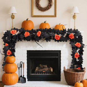 Christmas/Halloween Faux Vine Garland - Black Artificial Maple Leaf Vine for Home & Wedding 67 Inches Long