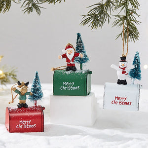 Christmas Iron Mailbox Decor (4.3”) - Santa/Snowman/Moose Holiday Tabletop & Window Display