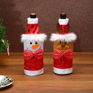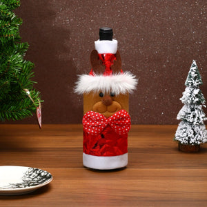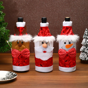 Christmas Wine Bottle Covers - Santa, Snowman & Reindeer for Holiday Table Decor