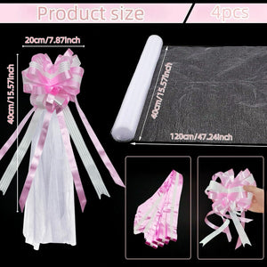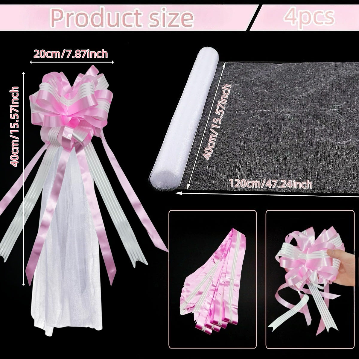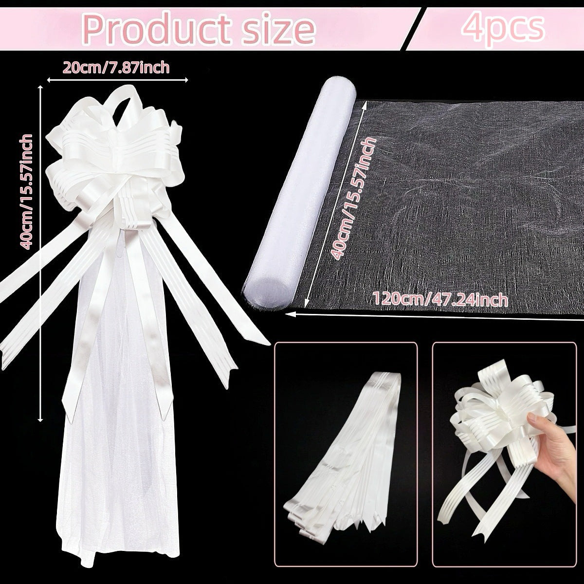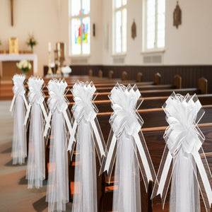4-Piece Church Wedding Decor Set: Decorative bows (with streamers) + tulle panels, tailored for church chair/pew styling