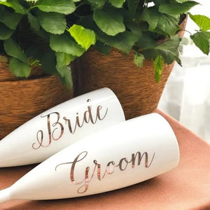 - Customize It: Add names, wedding date, monograms, or cute designs to the flutes. Make each toast feel personal!