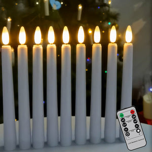 Bulk Electric Candlestick Lights Flameless Ivory Taper Candles Flickering with 10-Key Remote Battery Operated Led Warm 3D Wick Light Window Candles Christmas Home Wedding Decor Wholesale