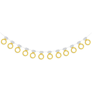 Engagement & Wedding Party Glitter Paper Diamond Ring Banner (16.4ft) - 3-Pack w/ Ribbon & Needle