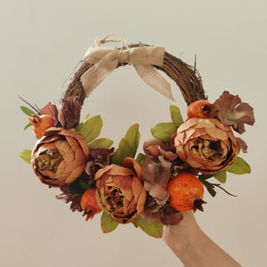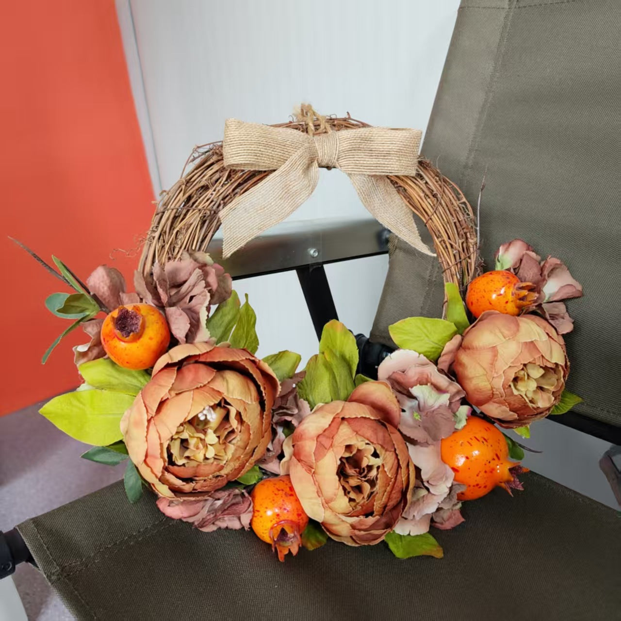 Fall-Themed Handmade Wreath for Wall/Door - Artificial Flowers & Natural Vines Ideal for Christmas & New Year