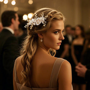 - Materials: Delicate fabric florals, sparkling rhinestones, crystals, silicone foliage, and pliable alloy wire