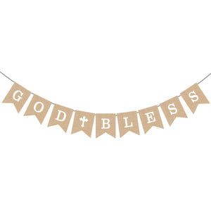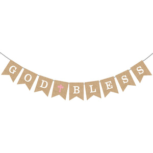 God Bless Burlap Banner - Baptism Christening First Communion Baby Shower Party Decor