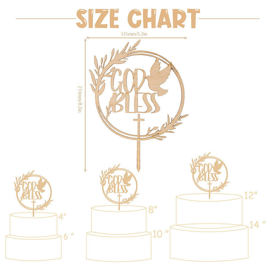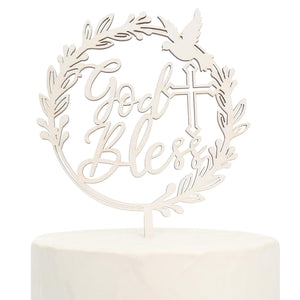 God Bless Wooden Cake Topper - Baptism Christening Communion Religious Party Decoration