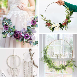 ✅ What’s In The Kit: 1 gold hoops (12-inch diameter, 3mm thick) + 1 wooden bases + 5 random flower varieties, all you need for eye-catching decor in one set.