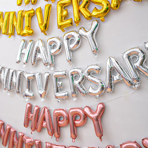 Happy Anniversary Foil Balloon Set - 16 Inch Anniversary Decorations (Gold, Silver, Rose Gold)