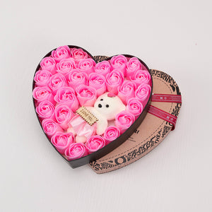 Heart Shaped Soap Rose Gift Box - 24 Soap Roses + Teddy Bear | Birthday & Valentine's Day Gift