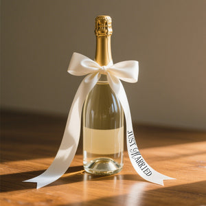 This "Just Married" wedding ribbon (0.8" wide x 24" long) is here to make your celebration bottles shine—whether it’s for the toast, photo ops, or as a cute keepsake. Soft, (flowy), and packed with wedding magic!