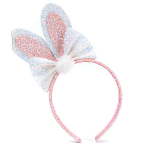 This kidsâ cartoon bunny ears headband is the star of any Easter partyâand itâs packed with all the cute details your child will love: a fluffy bow, sparkly glitter accents, and playful pom-poms that bounce with every skip and jump.
