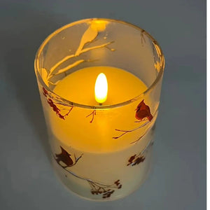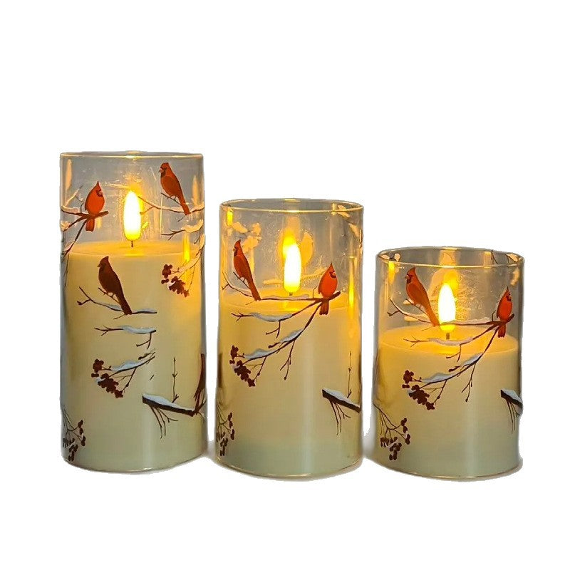 LED Christmas Candle, Red Bird & Berry Pattern Decorative Lamp, 8.07"x6.3"x3.23" - Ambient Light for Holiday Decor