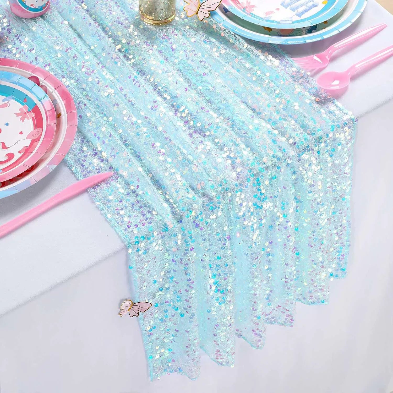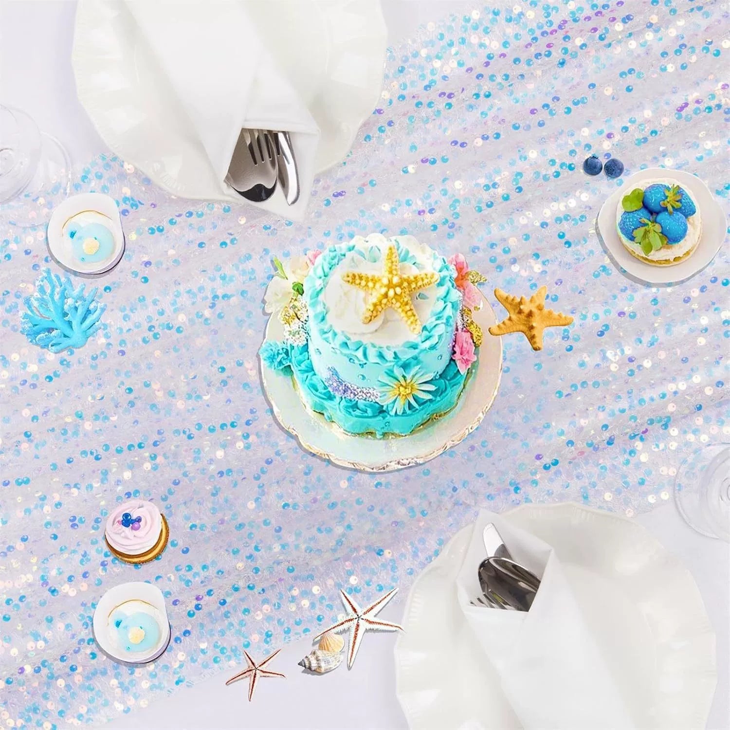 Mermaid Sequin Table Runner - Sparkly Glitter Table Decor for Wedding, Birthday Party, Event Backdrop