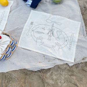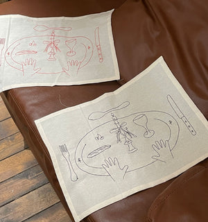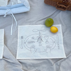 Minimalist Embroidered Line Art Placemats & Napkins, 11.8"×15.7"