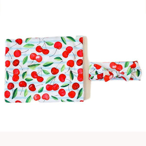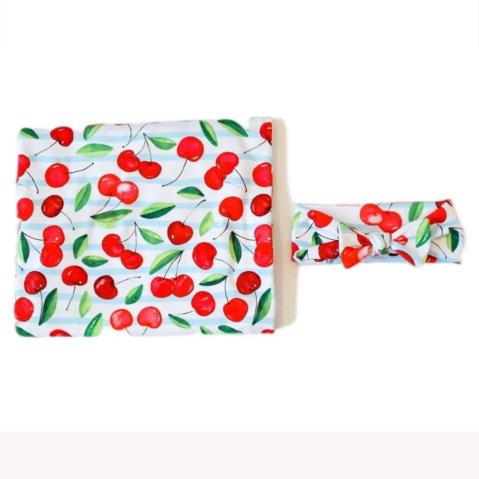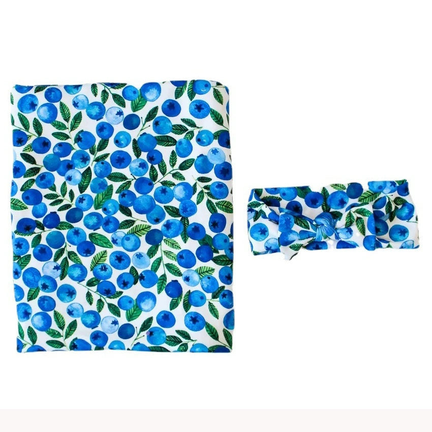 Newborn Swaddle Blanket Set with Fruit Print - Baby Swaddle, Bunny Ear Headband for Infant Photography & Daily Use