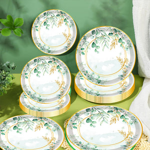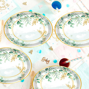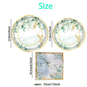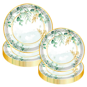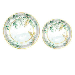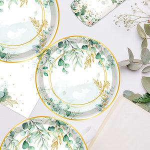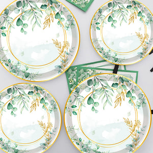 Premium 20 Pcs Sage Green Eucalyptus Floral Paper Plates Greenery Design Baby Showers Bridal Brunches Wedding Party Supplies