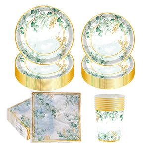Botanical Elegance Disposable Tableware Set – Luxurious & Practical
