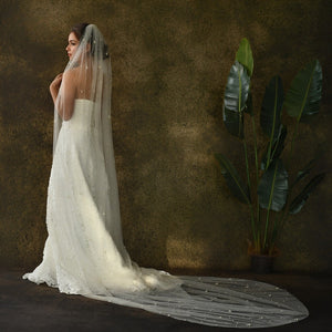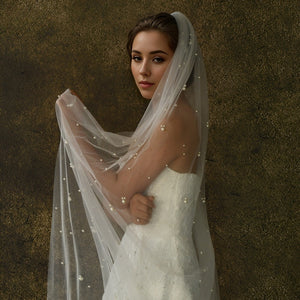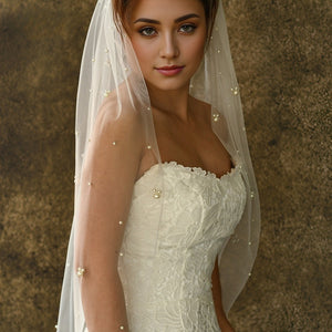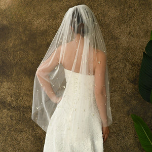 Bulk Pearl Veil 2025 Luxury Hand Sewn Bridal Veil with Adjustable Metal Comb for Garden Wedding & Bridal Shower Wholesale