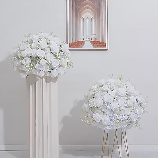 ◈ 3-in-1 Display Options ① Tabletop Centerpiece: Place on included stand ② Full Sphere: Connect two halves with ties ③ Loose Flowers: Detach individual stems
