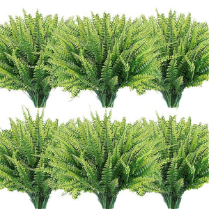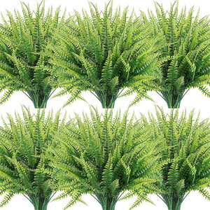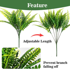 Premium Artificial Boston Fern Plants Indoor Outdoor 10PCS UV Resistant Realistic Faux Greenery Stems for Porch Decor