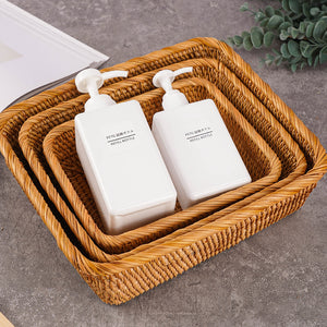 Premium Braided Rattan Organizer Set 3 Piece Modular Desktop Storage for Vanity Cosmetics & Office Décor
