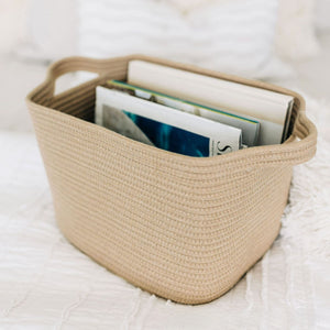 - Rectangular Basket. The size of woven basket is 13 x 10 x 9 Inches. Great storage solutions for your laundry room, entryway, playroom, and so on. It also can be used for nursery room as baby baskets or small toy baskets, making your home clean and tidy