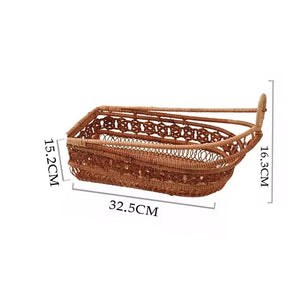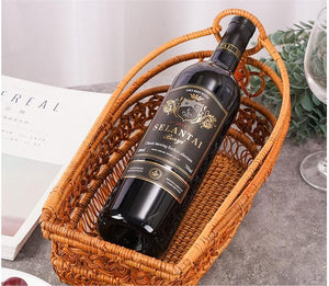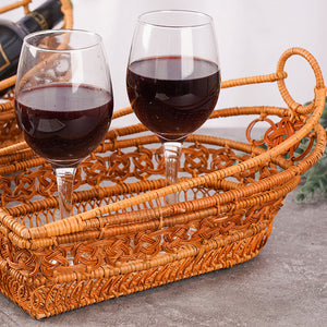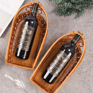 Premium Handwoven Rattan Wine Basket Nautical Boat Cellar Organizer for Kitchen Bar & Wedding Décor Storage