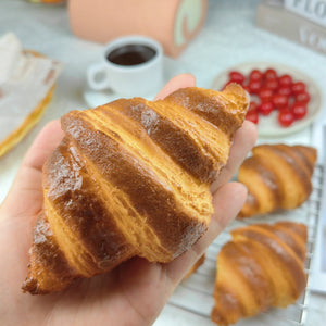 Need a croissant that never gets stale? Meet our lifelike croissant model! Made with eco-friendly PU material, it’s soft to touch with a fun slow-rebound texture—squish it, and it bounces back looking fresh as a bakery display.