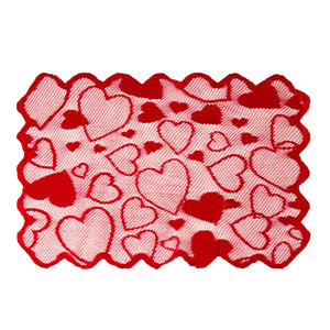 Red Heart Lace Table Runner & Placemat Set - Valentine's Day Wedding Home Decor