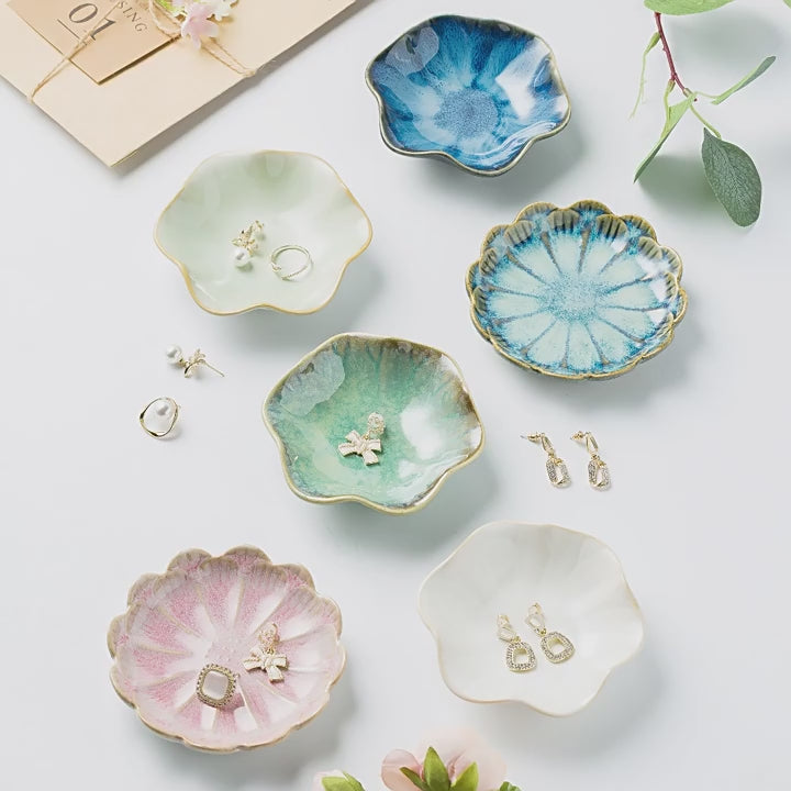 Bulk Ceramic Trinket Tray Set Durable Ring Dish & Jewelry Key Bowl with Gold Accents Boho Decorative Plate for Countertop Entryway & Vanity Women's Gift for Mother Sister Daughter 5 Colors Wholesale