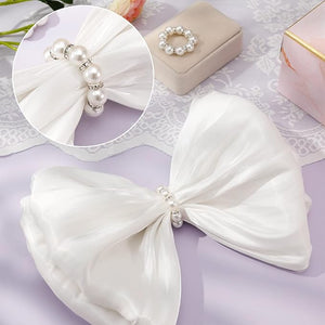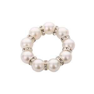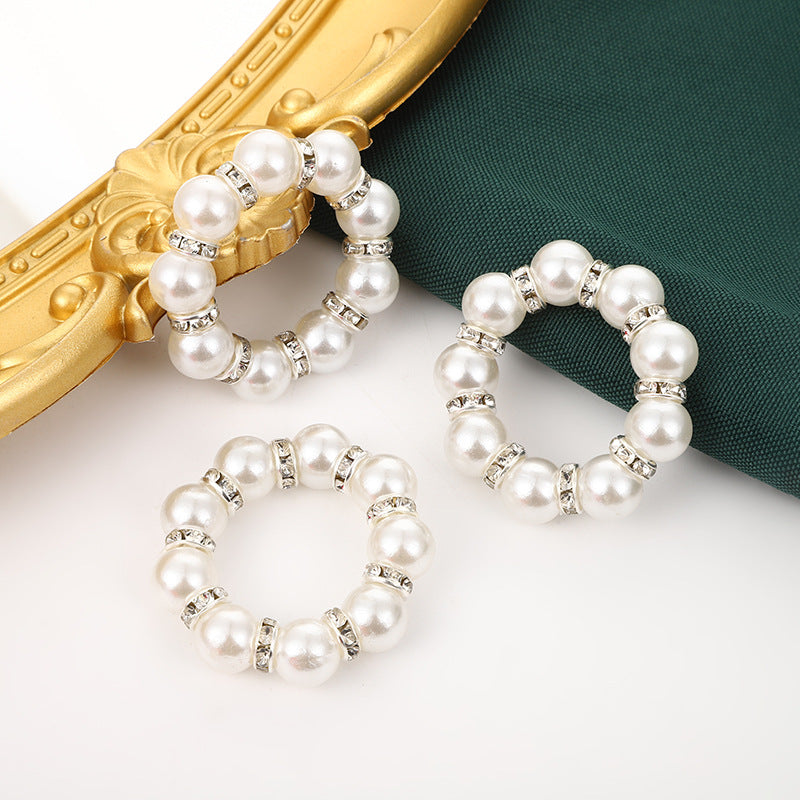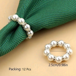 Romantic 12 Pcs Hand-beaded Pearl Rhinestone Napkin Rings - Wedding Table Elegant Decor Elastic Napkin Holders