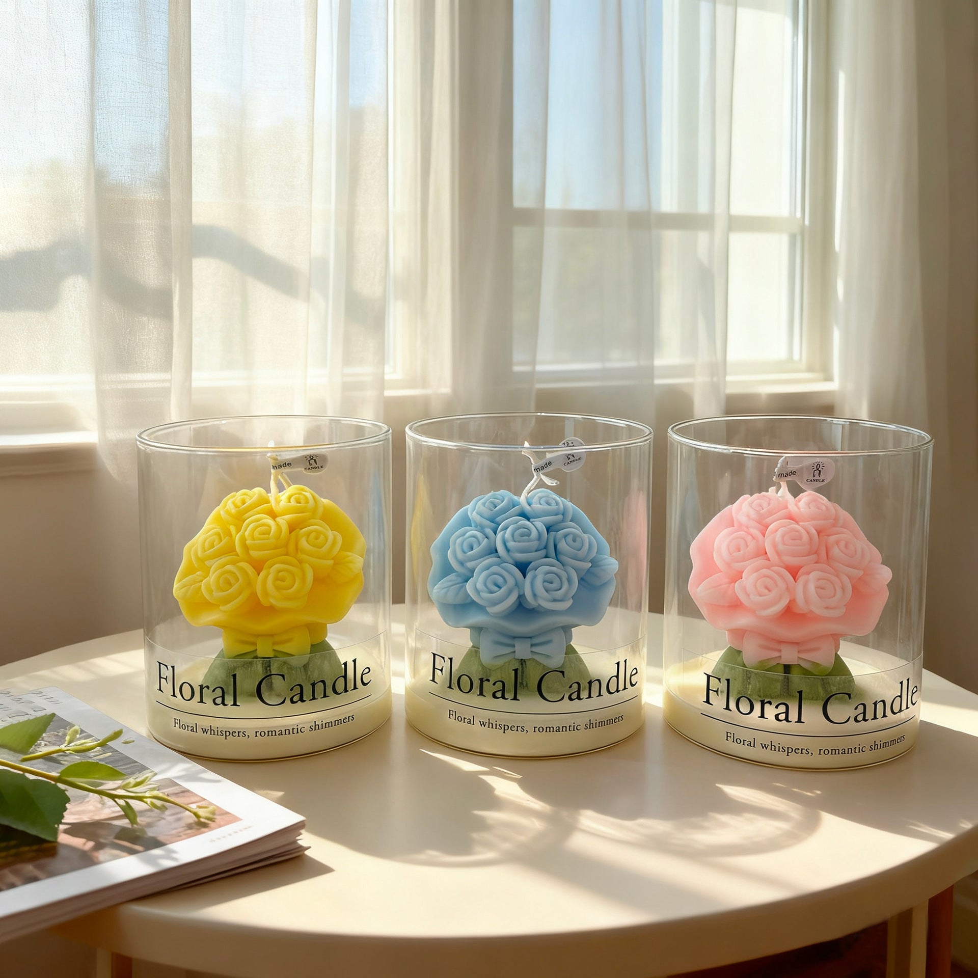 Rose Bouquet Scented Jar Candle - Ins Vibe Valentine's Day Gift Floral Glass Candle