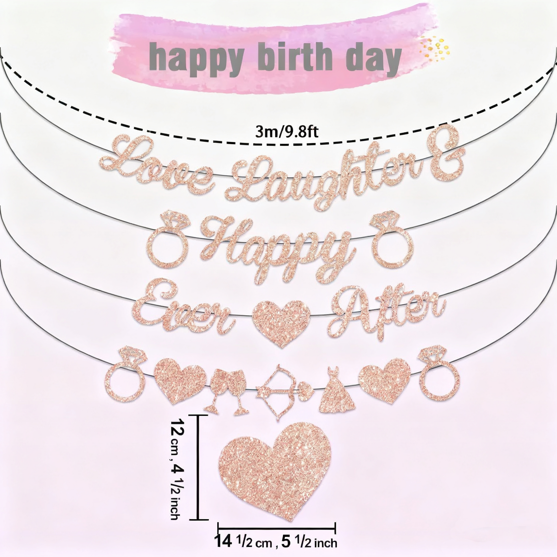 • 📏 Generous Size – Each banner strand is 9.8ft long, with cute elements like rings, hearts, and playful phrases. The glitter heart? A whopping 5.5" x 4.5" of sparkly goodness!